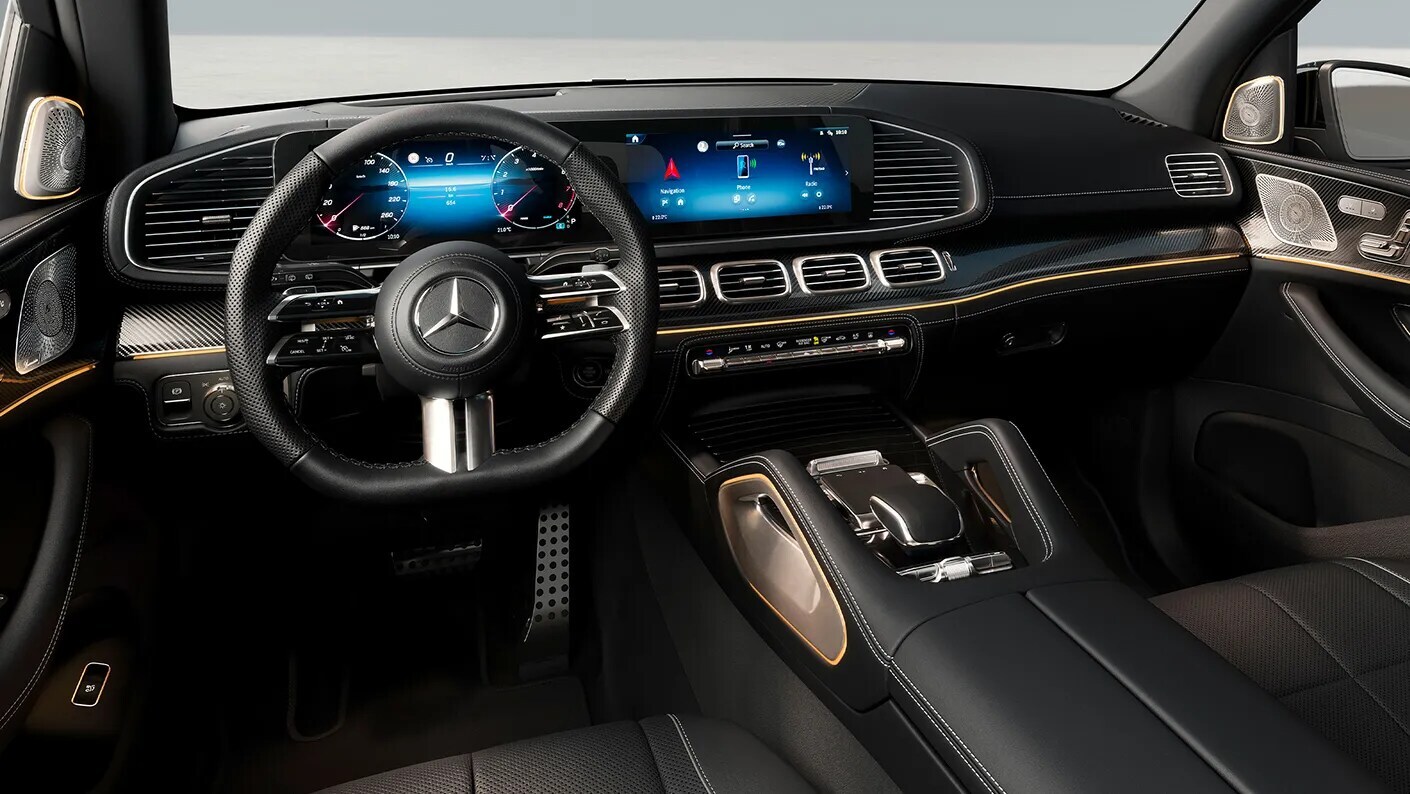 The new Mercedes-Benz GLS interior boasts luxurious materials complemented by an intuitive user interface and user-friendly controls. Standard features encompass power front seats, three-zone climate control, and a panoramic sunroof that bathes the cabin in natural light. Optional enhancements include heated and ventilated seats, multi-contour massage seats, ambient lighting, and more.