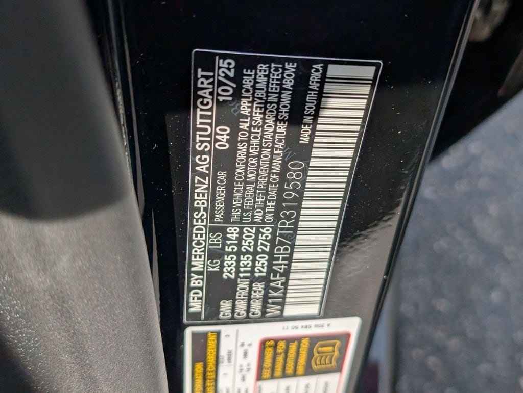 4MATIC®, 11.9" Center Touchscreen Display, 4-Wheel Disc Brakes, 5 Speakers, ABS brakes, Air Conditioning, Alloy wheels, AM/FM radio: SiriusXM, AMG® Body Styling, AMG® Floor Mats, AMG® Line, AMG® Line Exterior, Anti-whiplash front head restraints, Apple CarPlay®/Android Auto®, Auto High-beam Headlights, Auto tilt-away steering wheel, Auto-dimming door mirrors, Auto-dimming Rear-View mirror, Automatic temperature control, Black Fabric Headliner, Black Rubber All-Weather Front/Rear Floor Mats, Body Color Rear Spoiler, Brake assist, Brushed Aluminum Sport Pedals with Rubber Studs, Bumpers: body-color, Child-Seat-Sensing Airbag, Compass, Delay-off headlights, Driver door bin, Driver vanity mirror, Dual front impact airbags, Dual front side impact airbags, Electronic Stability Control, Emergency communication system: Mercedes-Benz Emergency Call Service, Exterior Parking Camera Rear, First Aid Kit, Flat-Bottom Steering Wheel, Four wheel independent suspension, Front anti-roll bar, Front Bucket Seats, Front Center Armrest, Front dual zone A/C, Front reading lights, Fully automatic headlights, Garage door transmitter: HomeLink, Genuine wood dashboard insert, GUARD 360, Head restraints memory, Heated door mirrors, Heated front seats, Heated Steering Wheel, Illuminated entry, Knee airbag, Leather steering wheel, Low tire pressure warning, MB-Tex Dashboard, MB-Tex Upholstery, Memory seat, Metal Weave Center Console, Occupant sensing airbag, Outside temperature display, Overhead airbag, Overhead console, Panic alarm, Panorama Sunroof, Passenger door bin, Passenger vanity mirror, Perforated Brake Discs, Power adjustable front head restraints, Power door mirrors, Power driver seat, Power Heated Front Seats with Memory, Power moonroof, Power passenger seat, Power steering, Power windows, Premium audio system: MBUX, Radio data system, Radio: FrontBass 5-Speaker Audio System, Rain sensing wipers, Rear anti-roll bar, Rear fog lights, Rear reading lights, Rear seat center armrest, Rear window defroster, Remote keyless entry, Security system, SiriusXM Satellite Radio, Speed control, Speed-sensing steering, Split folding rear seat, Sport Suspension with Sport Steering System, Star Grille, Steering wheel memory, Steering wheel mounted audio controls, Tachometer, Telescoping steering wheel, Tilt steering wheel, TIREFIT, Traction control, Trip computer, Turn signal indicator mirrors, Variably intermittent wipers, Weather band radio, Wheels: 19" AMG® Multispoke with Black Accents, Wheels: 7.5J x 18" Front and 8.5J x 18" Rear 5-Spoke, 4MATIC®. Price includes: $2000 - Mercedes-Benz Regional Cash Program. Exp. 03/31/2026